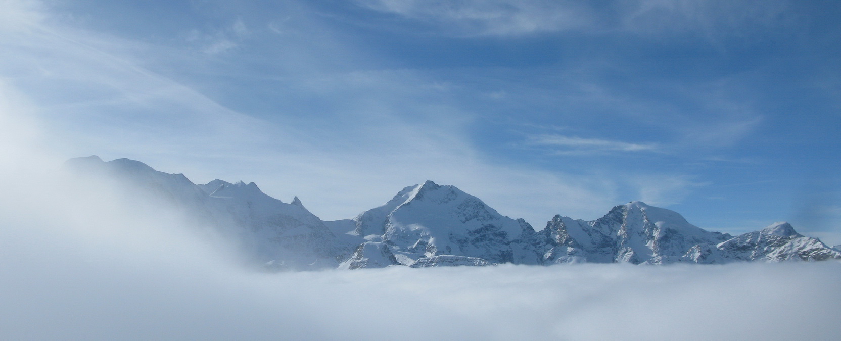V prípade vyditeľnosti zaručené brutálne výhľady na hlavnú časť Berninských Álp.