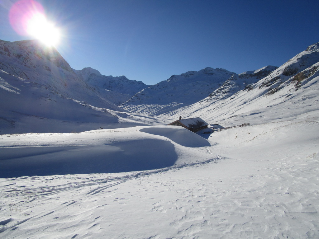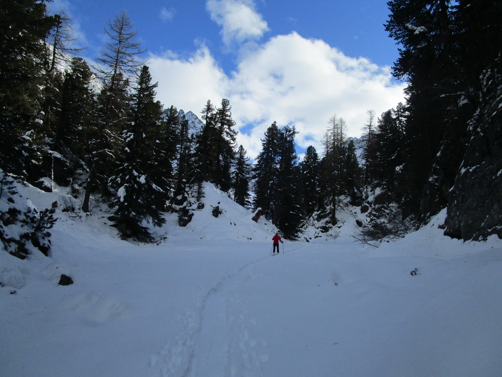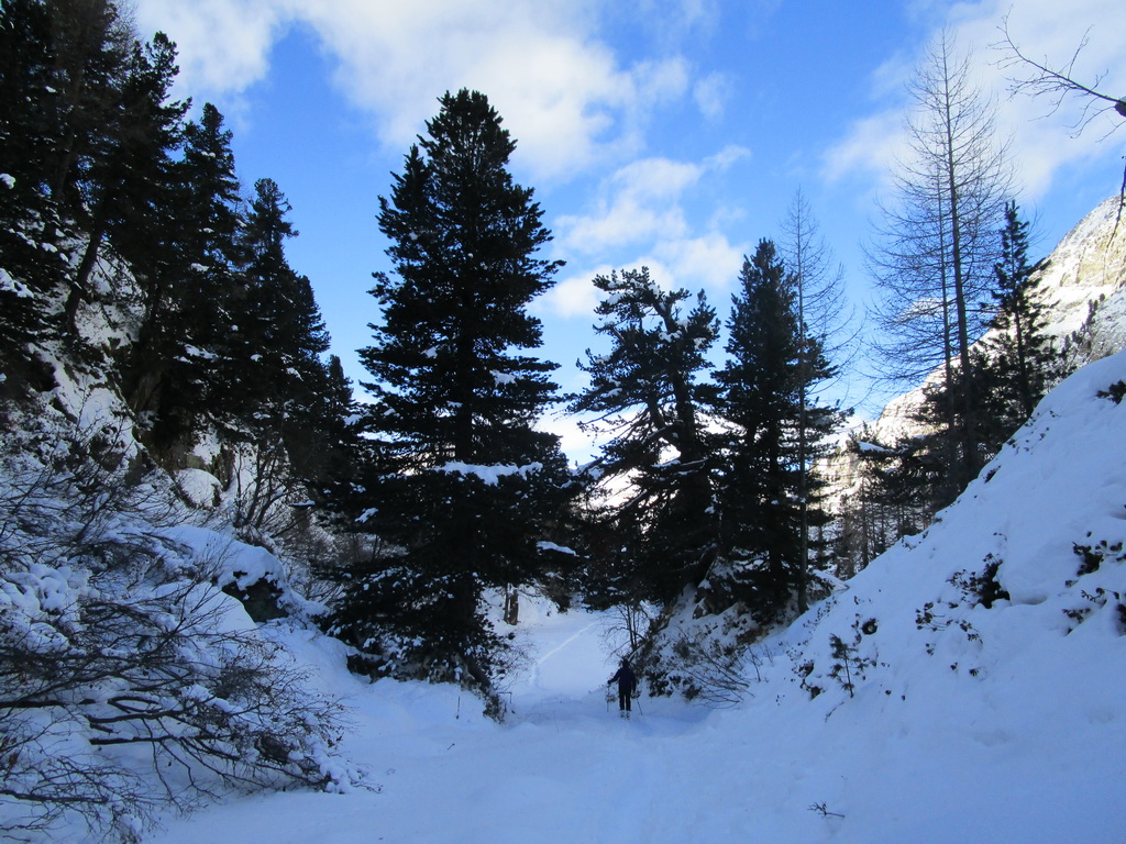 Val Forno sa nachádza východne smerom od Maloje . Parkujeme za Malojou v smere na Bergel, treba hneď odbočiť doľava a po pár stovkách metrov nájdete parkovisko (1790) v lesíku. Momentálne sa parkovné nevyberá. Začiatok sa ide po bežeckej stope, potom pokračujeme po ceste ku Lago Cavloc (1907). Cesta je prejdená ratrakom, takže na pásiky paráda, hore i dole. Od jazera pokračujeme po prešliapanej stope ku Plan Canin (1976). Zhodnotíme stav snehu, otočka a nazad. Pokocháme sa ľadmi a sme nazad pri aute. Cca 3-4 hoďky.
