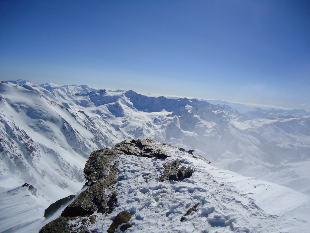 Vychádzam poobede z hornej stanice lanovky nad Suldenom. Nádherné dni so stabilným počasím treba využiť a tak pripínam na nohy ľahké drievka a vyrážam smer Suldenspitze. Cieľom je zmapovať podmienky po poslednom veľkom snežení. Dole je celkom dobrý prašan. Po víkende stopa slušne prešliapaná a tak sa notoricky známym výšľapom dostanem pomerne ľahko do sedielka pod Suldenspitze.