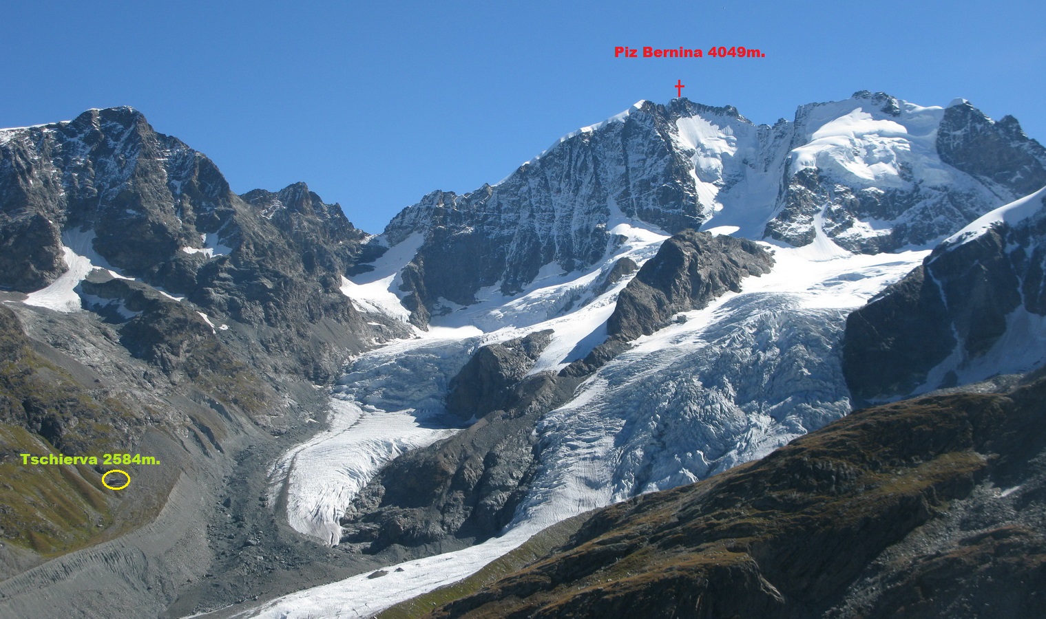 Tak som si vybehol aj dnes. Bežím hore trojkovým hrebeňom nad sedlom Prievlusa. Poznám to tu už dobre. Je potrebné sa maximálne sústrediť. Na nasledujúcom ostrom firnovom hrebeni koncentrácia pokračuje. Krok za krokom. Spravím ich veľa. jediné zakopnutie mačkou o mačku je však vylúčené. Dám si záväzok, že sa nebudem pozerať hore a preto ma Piz Bianco prekvapí, a už stojím hore.