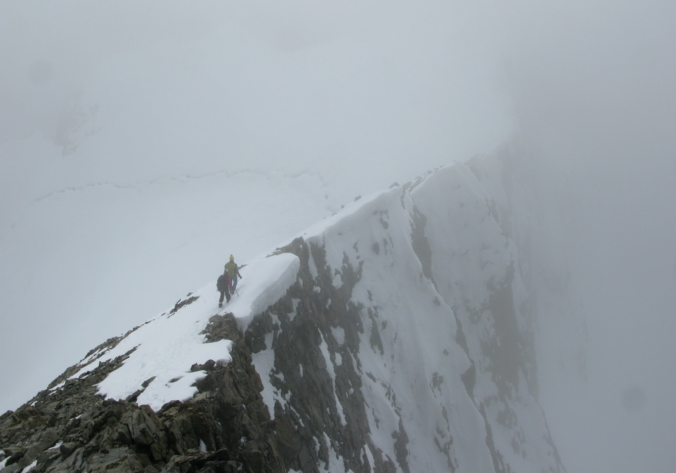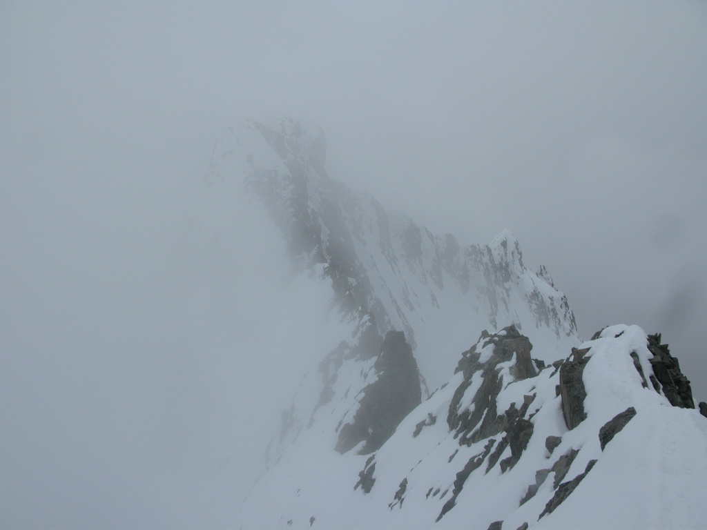 Na vrchole strávim takmer hodinu v príjemnom rozhovore. Na zostupe sa istím a zlaňujem ako sa len dá. Som maximálne zodpovedný. V závere skalného hrebeňa husto sneží. Prvý raz tu zlaňujem. Na pohodu. Na chatu prichádzam pred piatou celý mokrý.