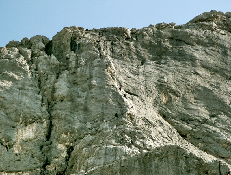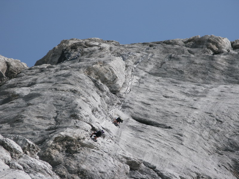 Pozorujeme z diaľky ľudí, ktorí už sú na ferrate. Nemáme ilúzie, že tu budeme sami, táto cesta je príliš známa a počasie zatiaľ vyzerá veľmi dobre.