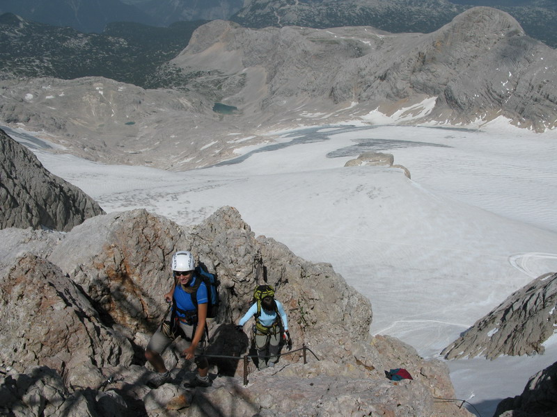 Nie je to tak dávno, čo som si prečítal na internete inšpirujúci článok o tejto túre. Dobrý nápad a ideálny cieľ na párdňový výpad. Zároveň príležitosť osviežiť si spomienky na jeden nerozvážny mladícky výlet spred 15 rokov. Tenisky, tričko a fľaška s vodou, tak by som charakterizoval náš vtedajší výlet na vrchol Dachsteinu 2996m.. Mali sme šťastie na počasie, keď sme vtedy o piatej stáli na vrchole a vychutnávali si tie úžasné výhľady.