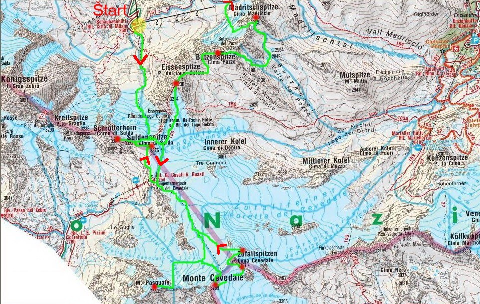 pod Pasquale 3275m 11h49min - M. Cevedale 3769m 12h47min +494m