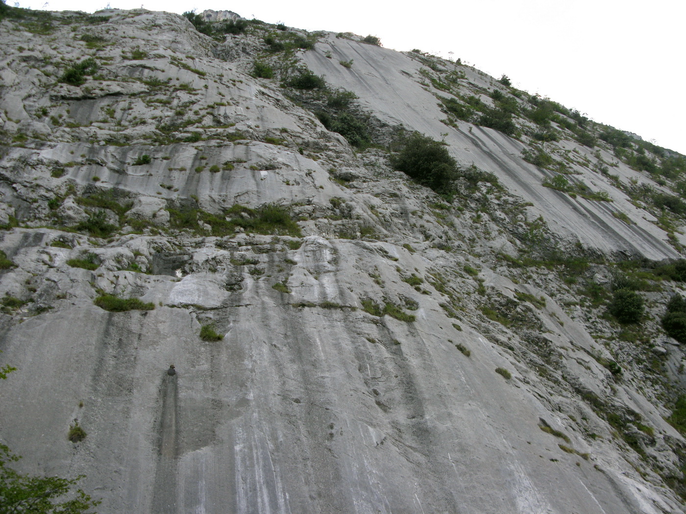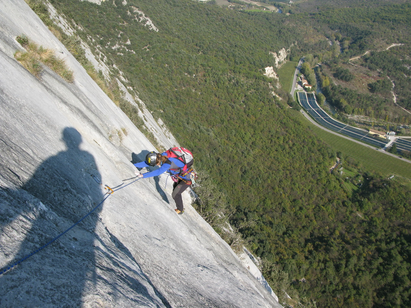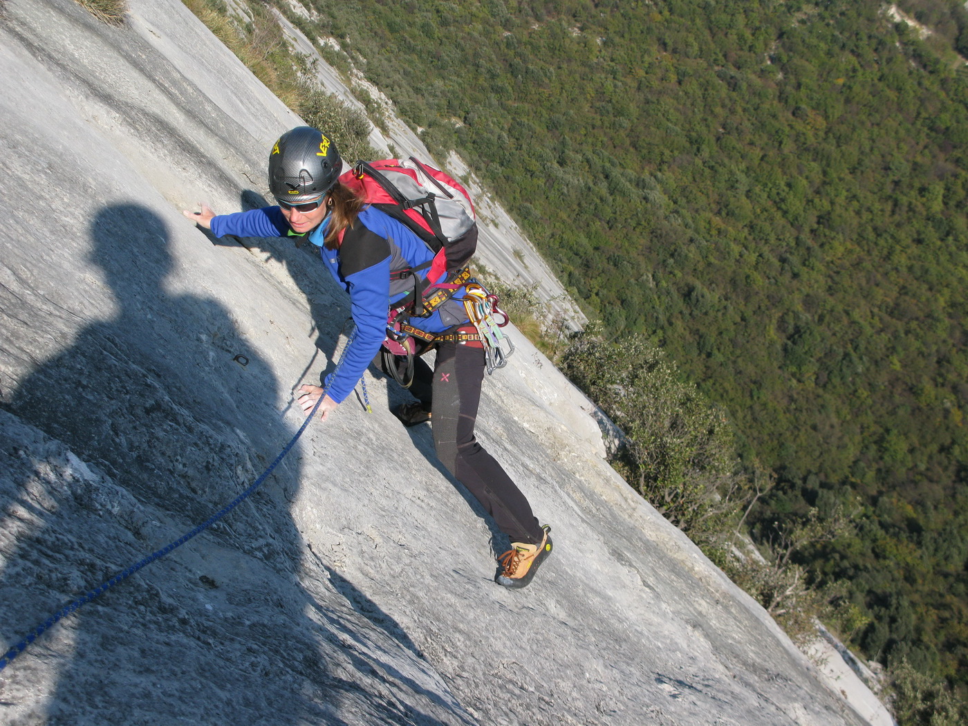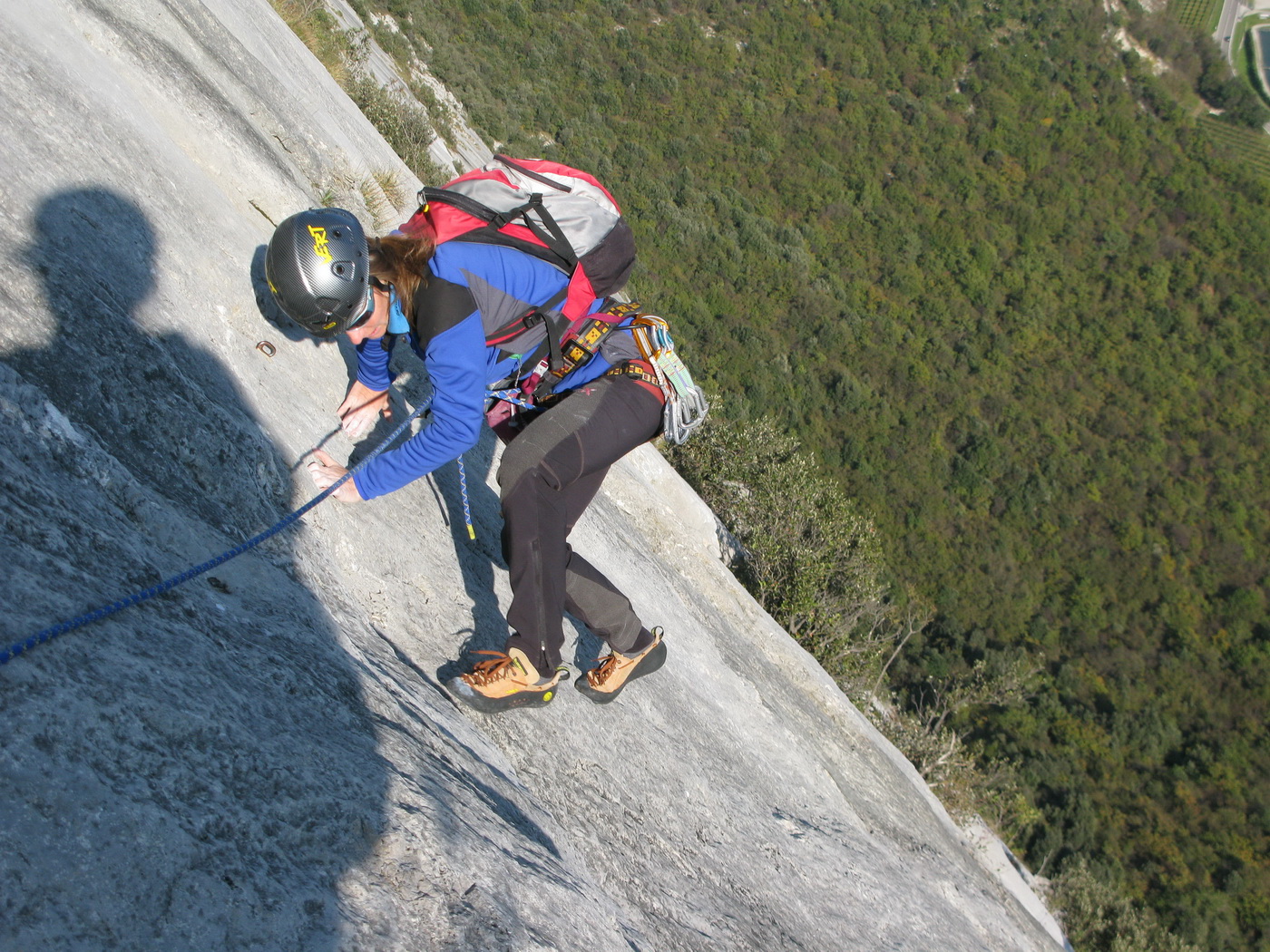 Neboli sme v Arcu prvý raz, kým sa nám podarilo v sprievodcovi objaviť oblasť s podozrivo dlhými a ľahkými cestami. Vyskúšali sme a potom sme už prakticky ani nechodili nikde inde... Na slnečných platniach sa dá liezť aj v októbri. Aj pri nižších ranných teplotách cez deň slniečko pekne skalu nahreje.