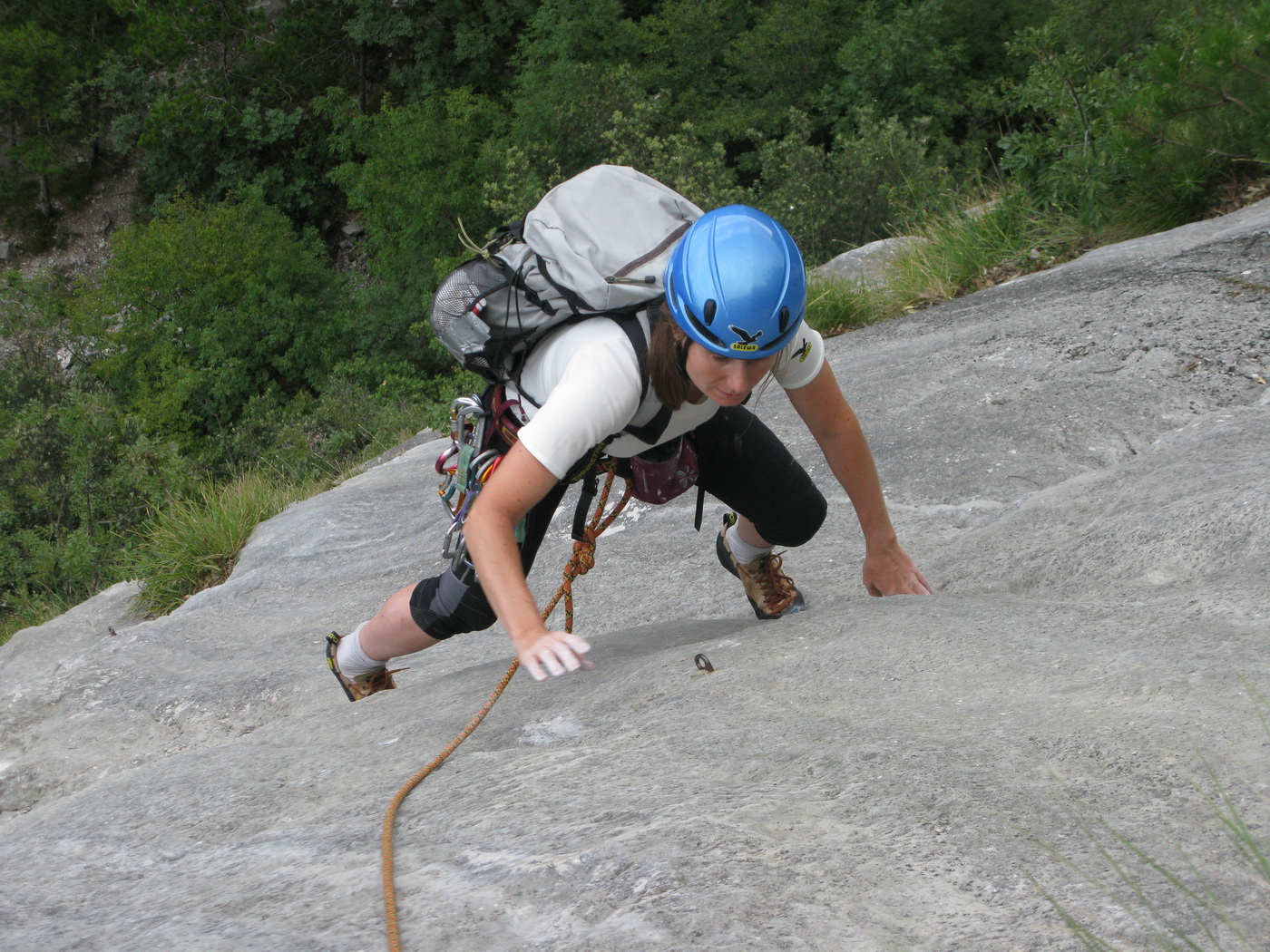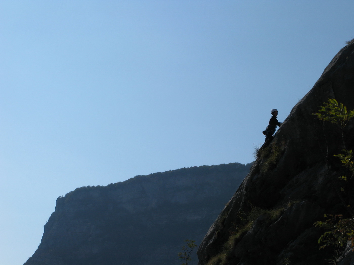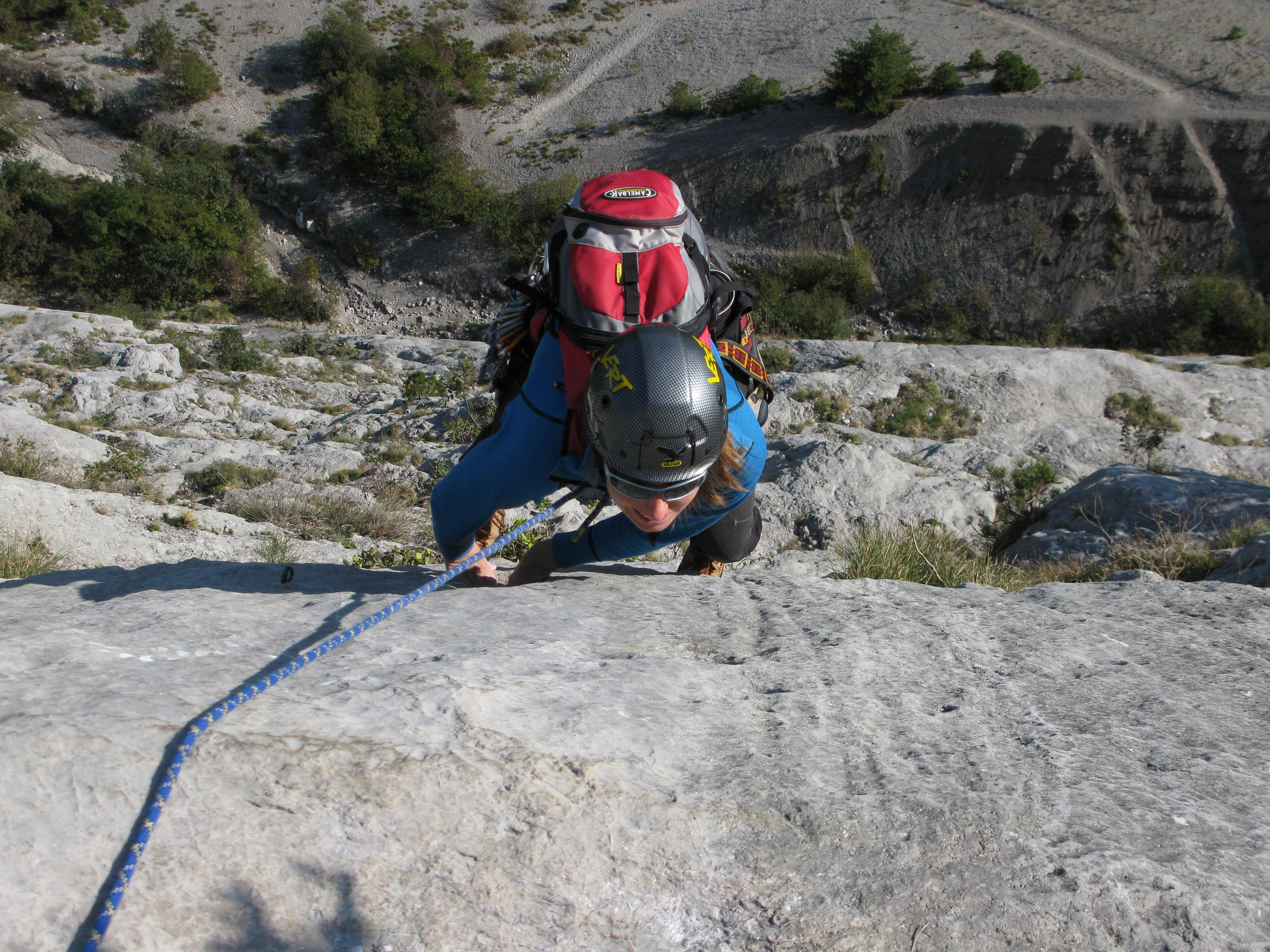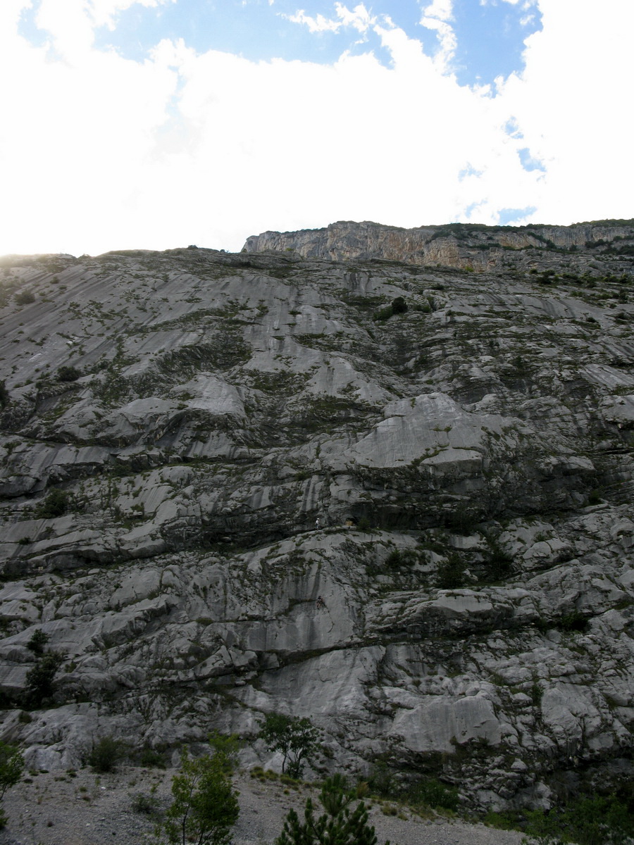 Neboli sme v Arcu prvý raz, kým sa nám podarilo v sprievodcovi objaviť oblasť s podozrivo dlhými a ľahkými cestami. Vyskúšali sme a potom sme už prakticky ani nechodili nikde inde... Na slnečných platniach sa dá liezť aj v októbri. Aj pri nižších ranných teplotách cez deň slniečko pekne skalu nahreje.