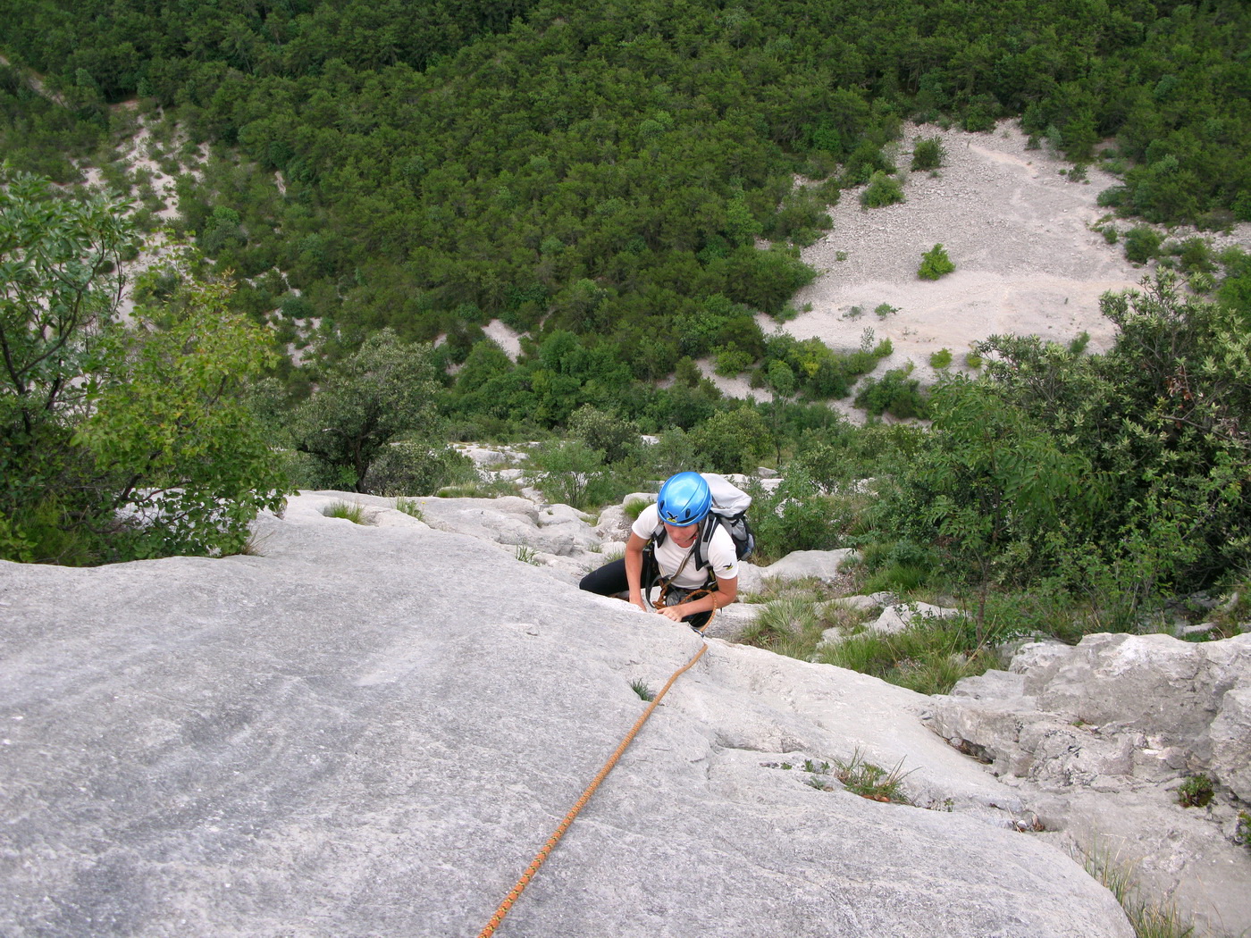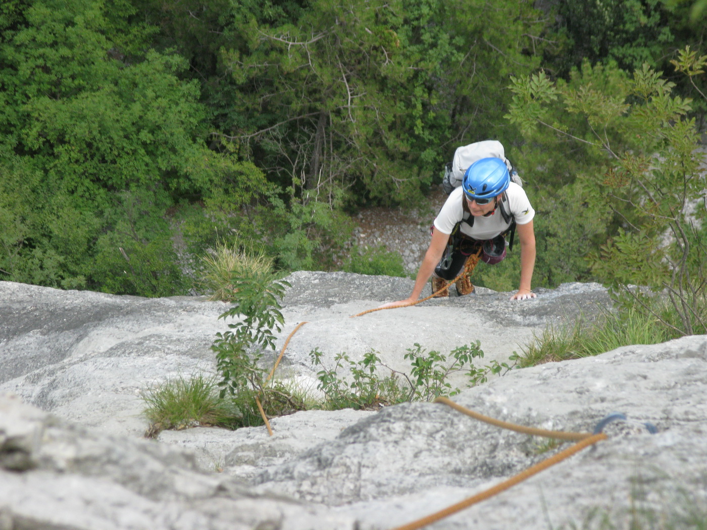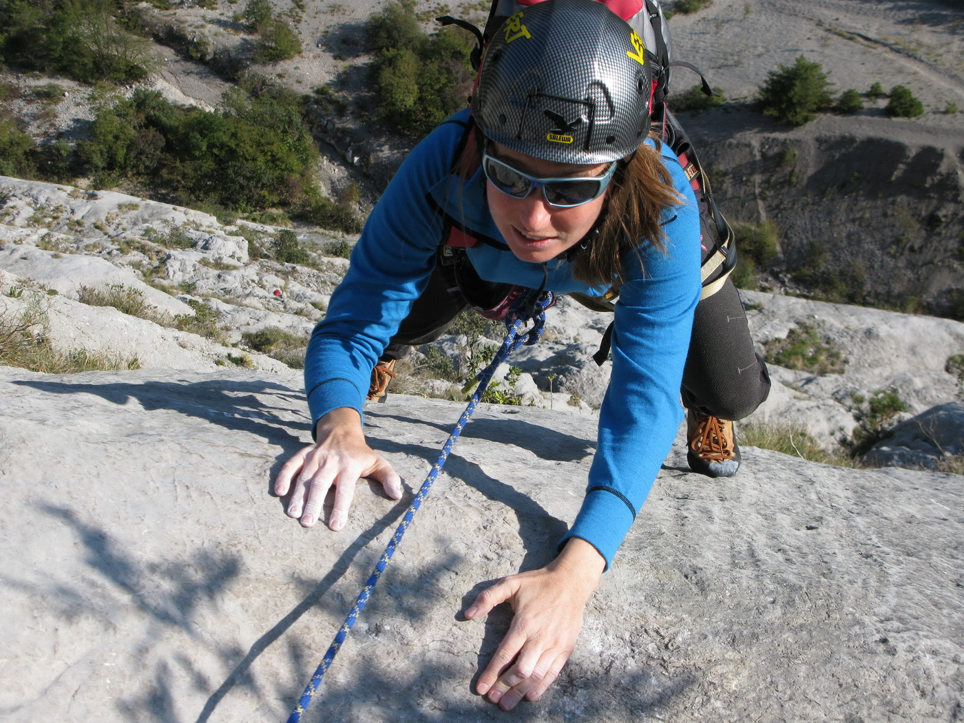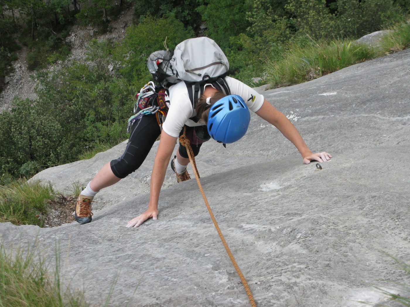 Neboli sme v Arcu prvý raz, kým sa nám podarilo v sprievodcovi objaviť oblasť s podozrivo dlhými a ľahkými cestami. Vyskúšali sme a potom sme už prakticky ani nechodili nikde inde... Na slnečných platniach sa dá liezť aj v októbri. Aj pri nižších ranných teplotách cez deň slniečko pekne skalu nahreje.