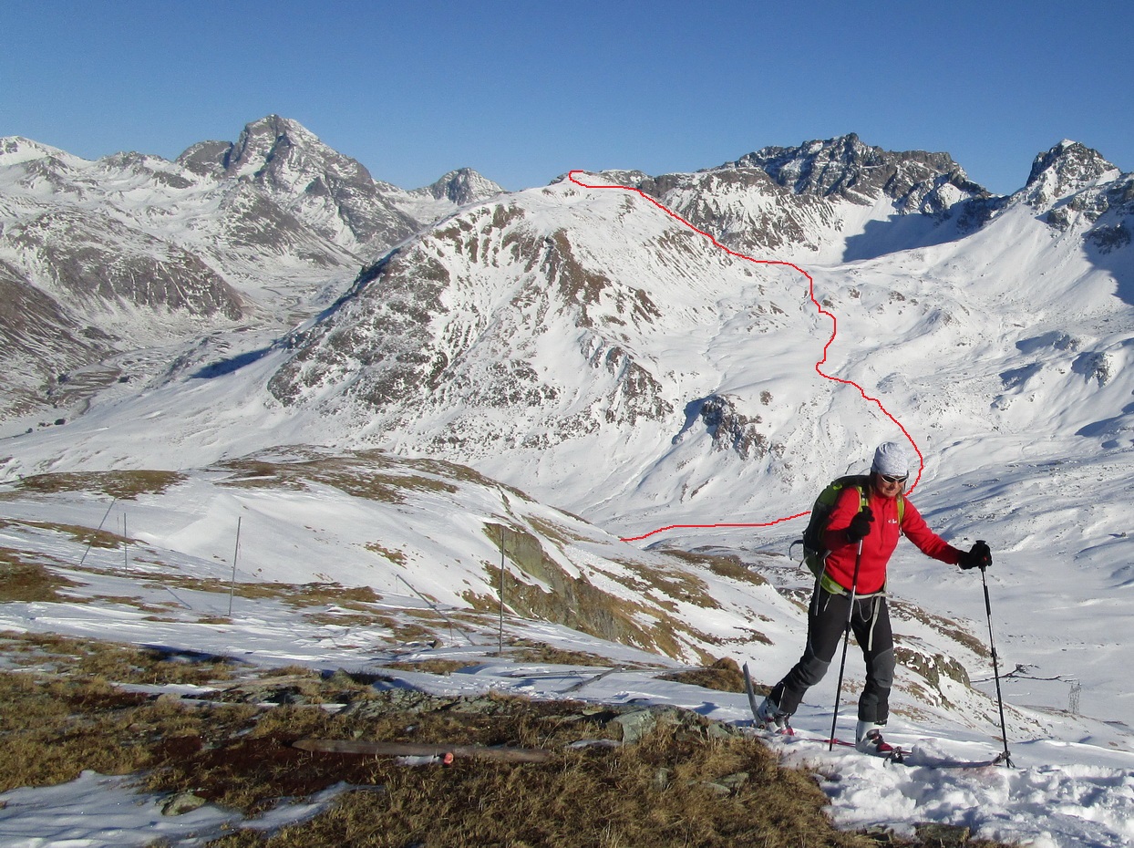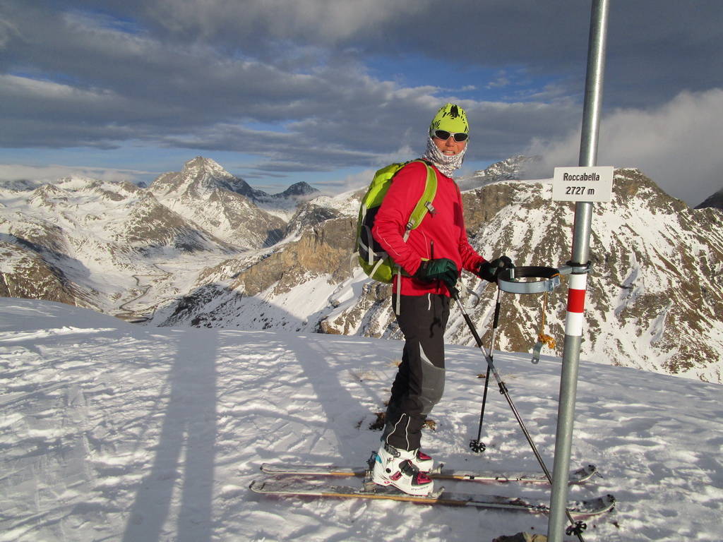 Roccabella 2727m. je výrazný končiar pekne viditeľný z Julierpassu. V smere od juhu má svahy porastené trávou poprekladanou kameňmi s prijateľným sklonom. V priaznivých snehových podmienkach tu je určite veľa možností kadiaľ sa dá dostať hore ale i dole.