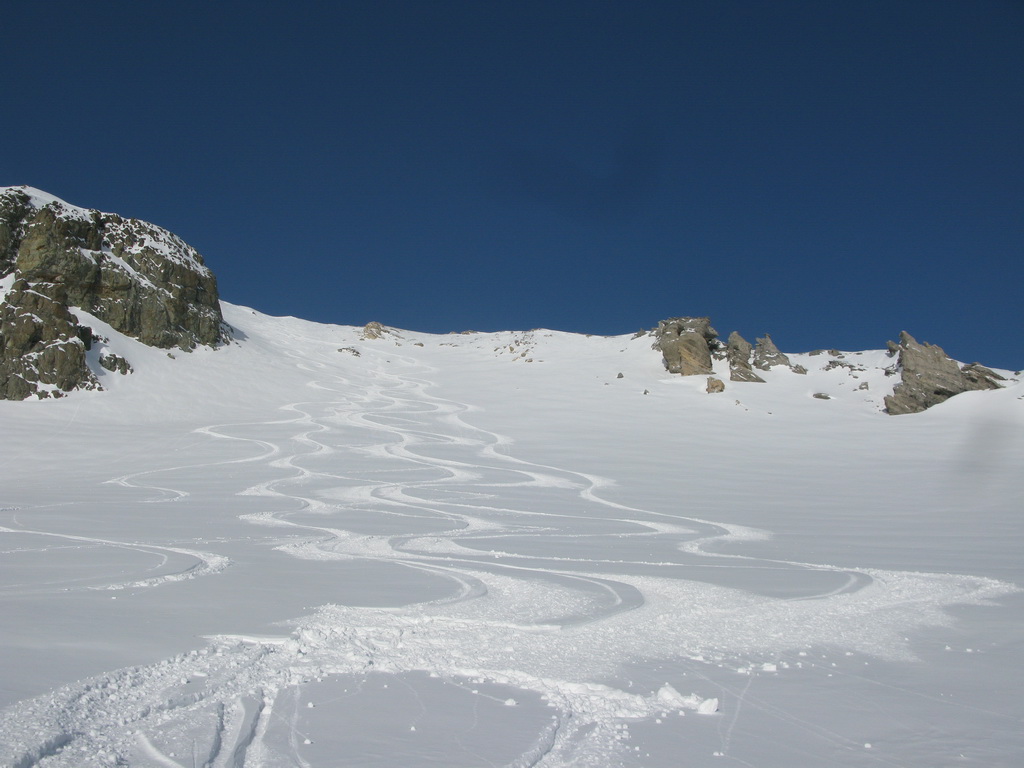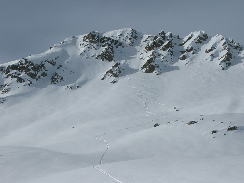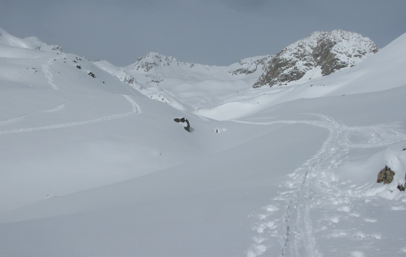 Vyrážame z parkoviska neďaleko Julierpassu (v smere od Silvaplany) smerom do doliny Valletta dal Guglia. Južne orientovaná dolina s mierne strmým stúpaním nás dovedie na nekonečné pláne medzi mohutným Piz Julier a hrebeňom Corn Suvretta - Piz Surgonda. V tomto hrebeni sa nachádza výrazný vrchol Corn Marguns 3034m.. Žlabom v južnom svahu so sklonom cca 40 stupňov na vrchol.