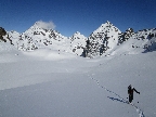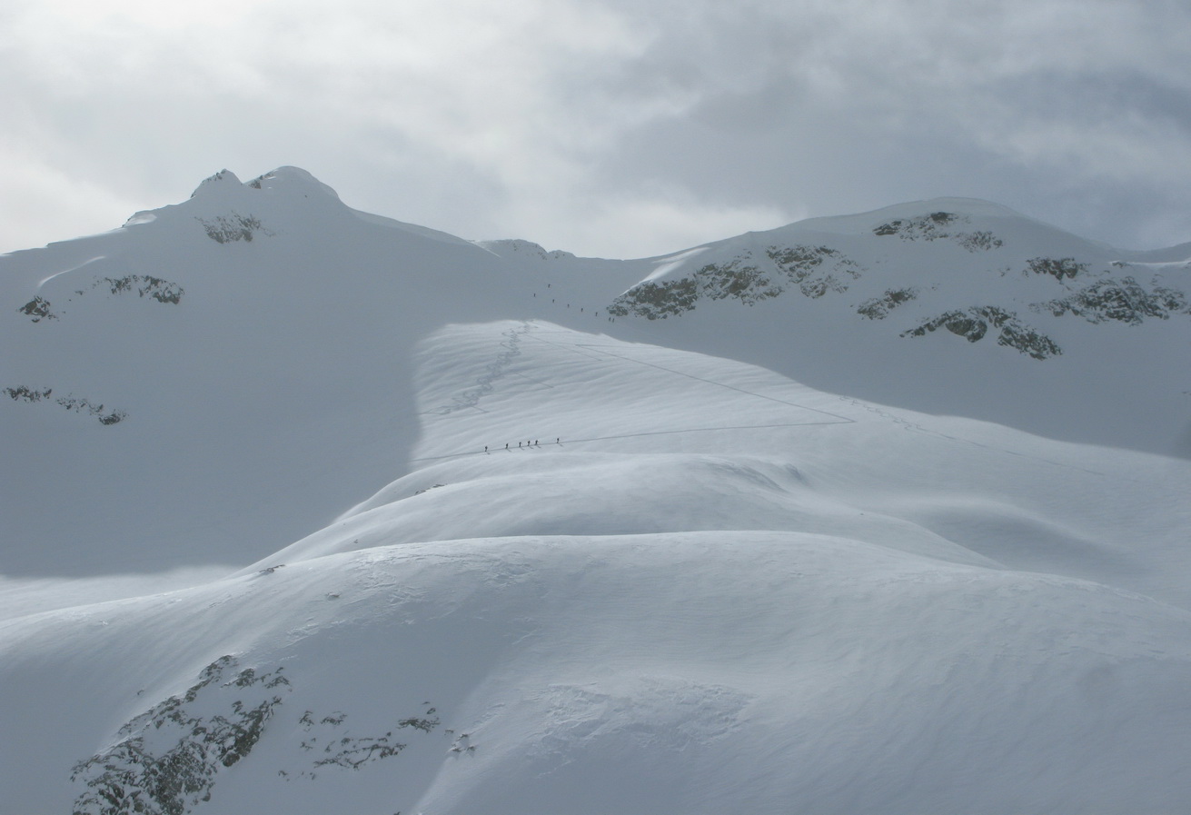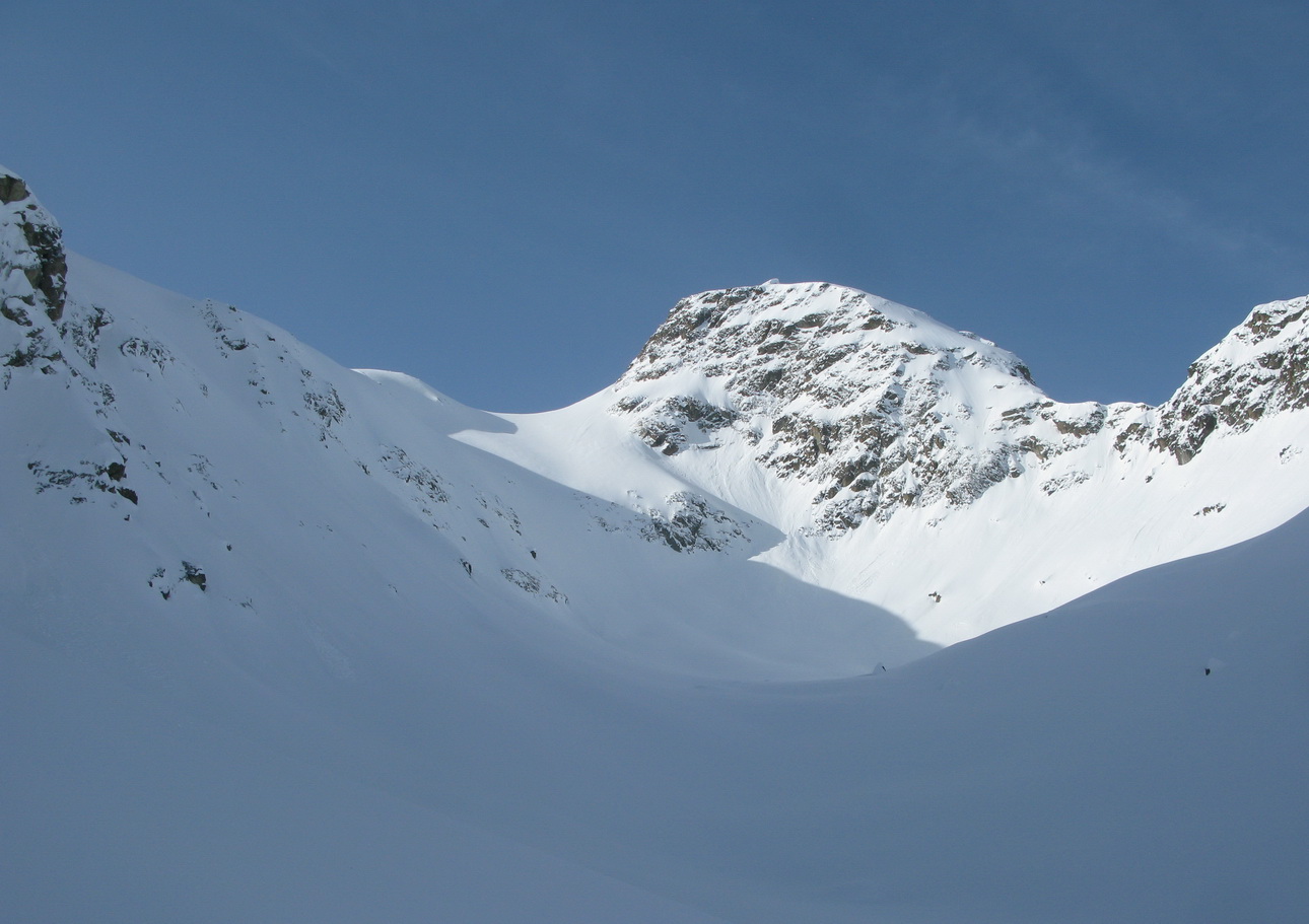 Na tretí pokus o tento kopec sa za dobrých podmienok zastavujem až na vrchole. Záver už idem peši. Z vrcholu sú nádherné výhľady na všetky strany. Po návrate k lyžiam nasleduje tisíc výškových metrov krásneho zjazdu v prašane.