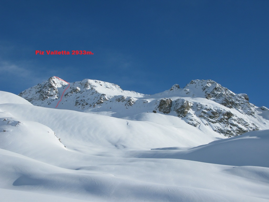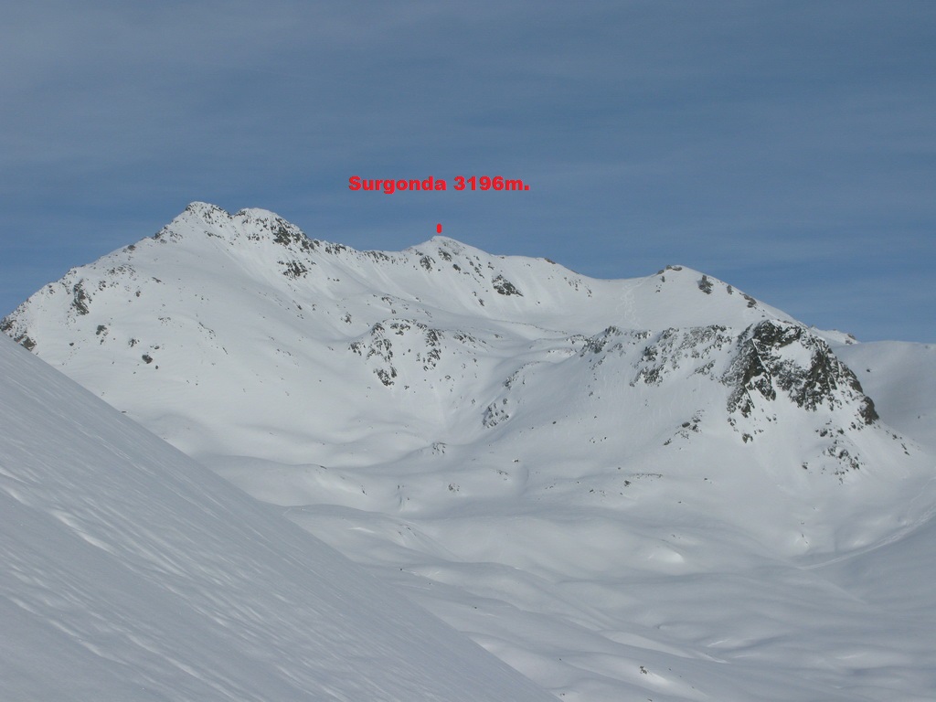 Piz Surgonda 3196m. Veľmi často navštevovaný vrchol s viacerými možnosťami výstupu a množstvom variánt zjazdov. V smere od Julier Hospiz (smerom na sever) nastúpate 960 v.m., čas cca 3,5 hod (údaje z oficiálneho sprievodcu).