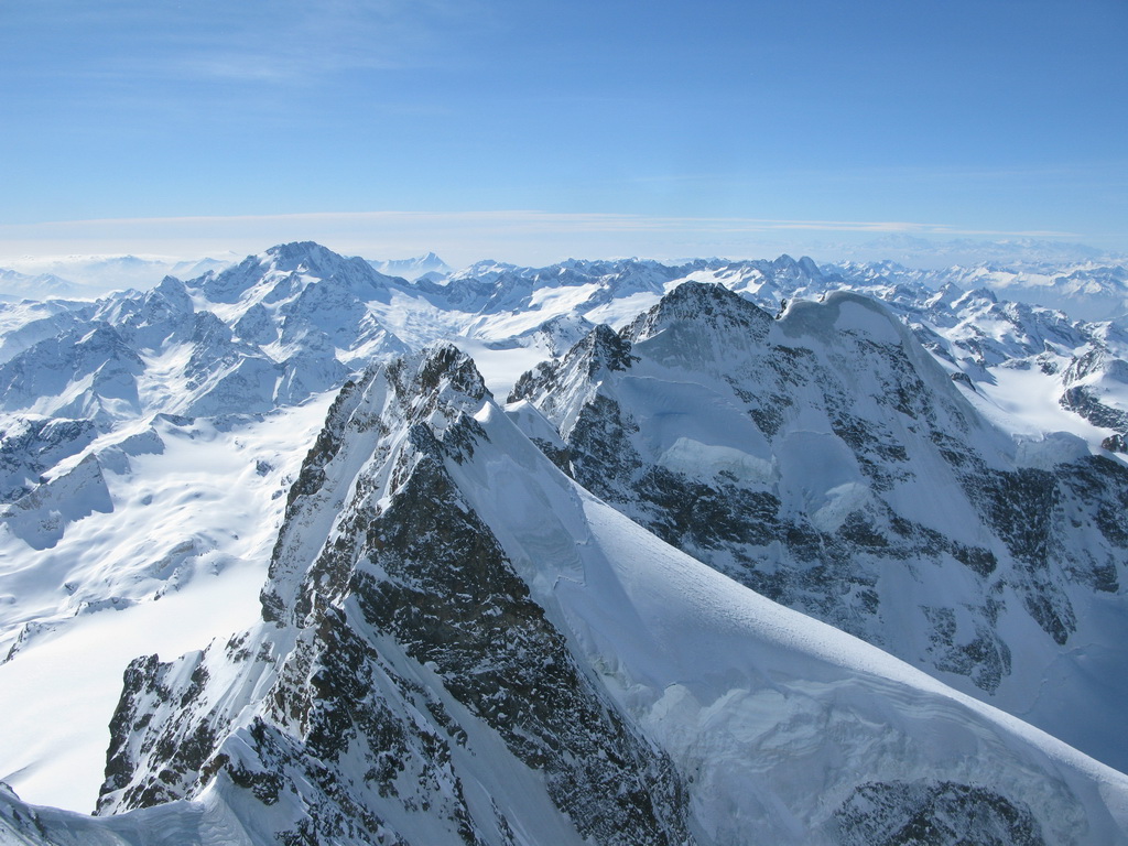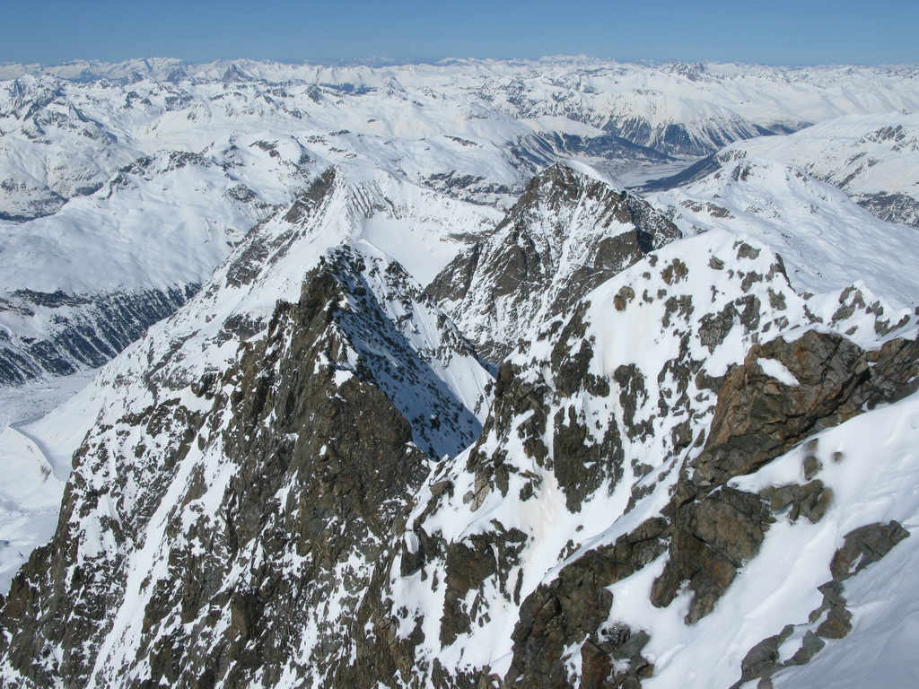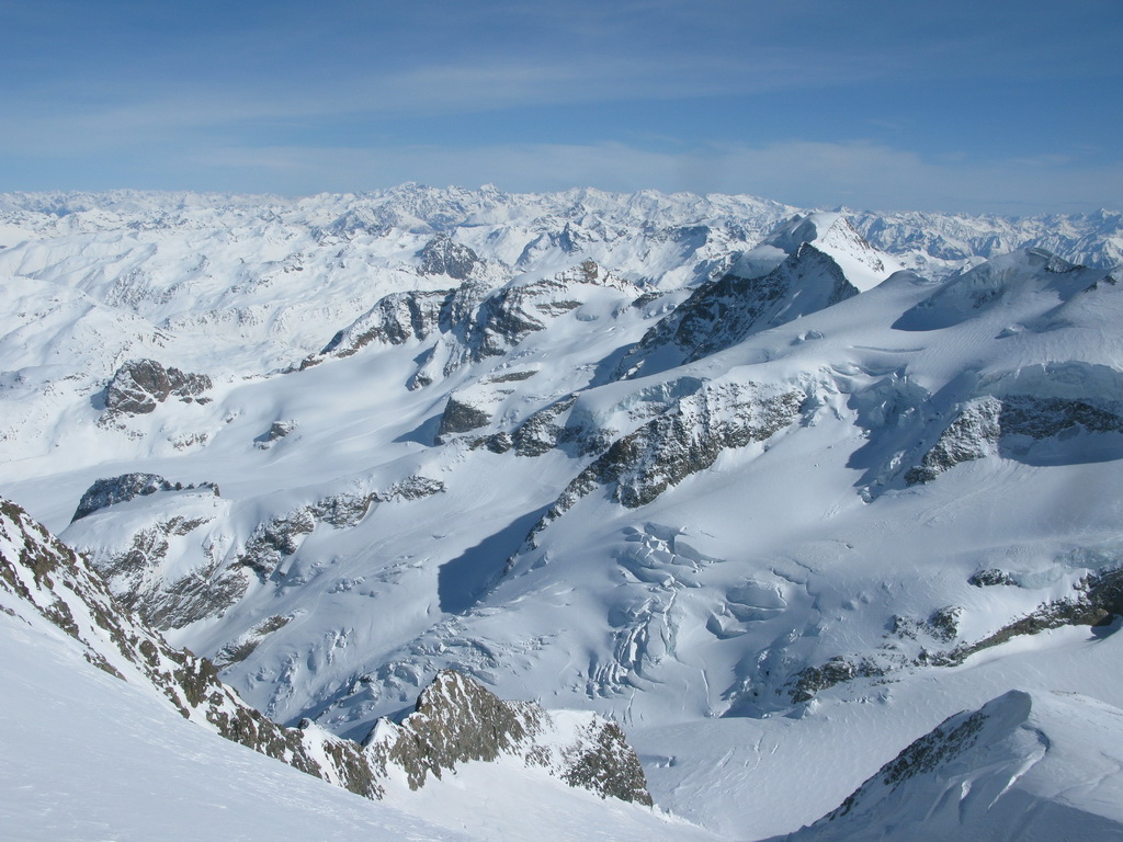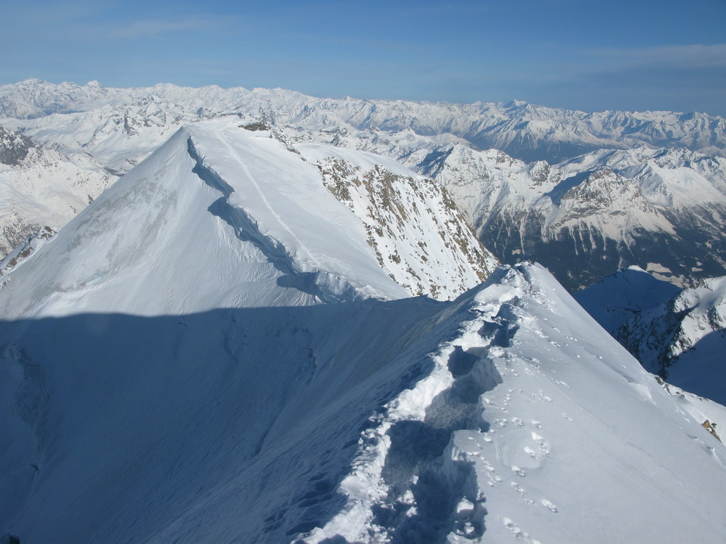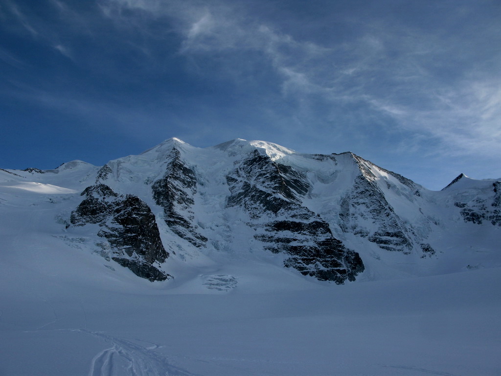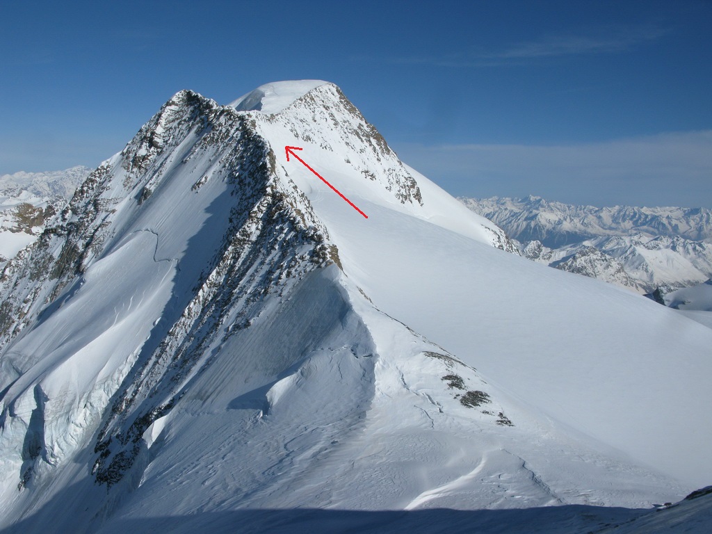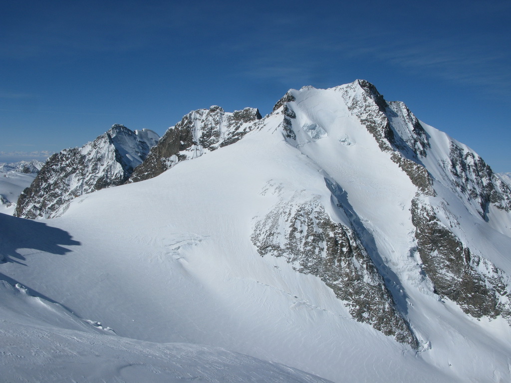 "Tento pyšný a najvyšší vrchol Graubundenu a zároveň jediná štvortisícovka býva navštevovaná aj v zime skúsenými skialpinistami. Popri dobrých snehových podmienkach a stabilnom počasí je potrebné na túto túru mať aj horolezecké skúsenosti, výbornú kondíciu a adekvátny výstroj. Táto túra je dlhá, prípadné prenocovanie na chate Marco e Rosa (zatvorená, winterraum zle vybavený) nie je bez rizika. Pri náhlom zhoršení počasia sa môže chata premeniť na pascu, v zlom počasí sa dole nedostanete. Prekonanie ľadovcových zlomov v takzvanom Buuchu je veľmi ťažké, v žiadnom prípade nepodceňujte možný pád kamenia a ľadu v tejto oblasti. Relatívne bezpečný výstup cez Fortezzu a terasu Bellavisty je možný, ale s veľkou časovou stratou..."