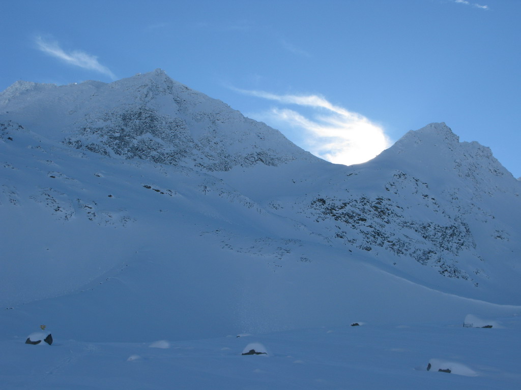 O 11hod. sme teda vyrazili na prieskum terénu. Podľa stôp a podľa toho, čo povedal chatár sa dnes pár ľuďom podarilo v peknom počasí vystúpiť aj na vrchol Hoher Sonnblick. My sme sa otočili, tak na polceste s cennými informáciami o nástupe...
