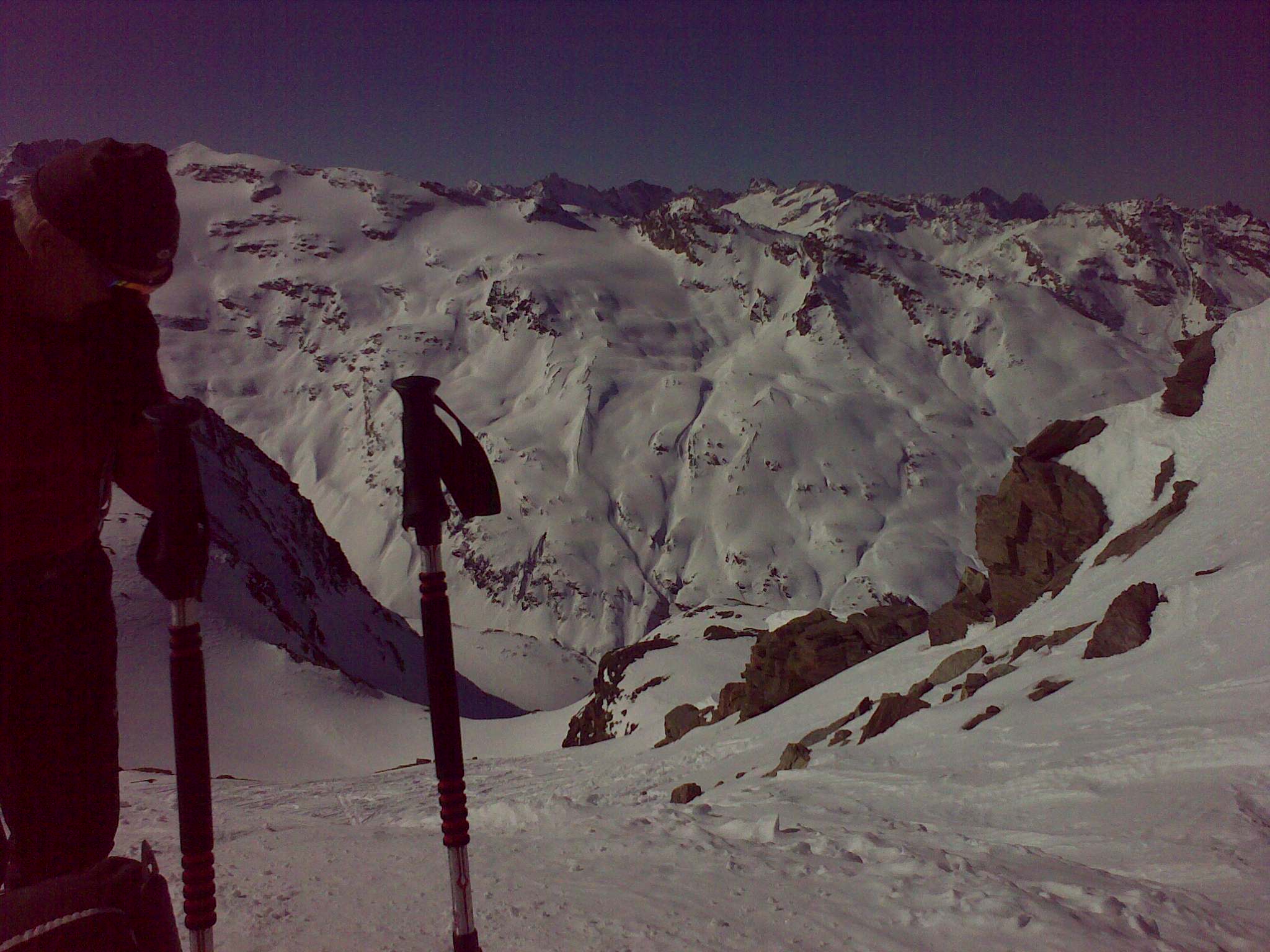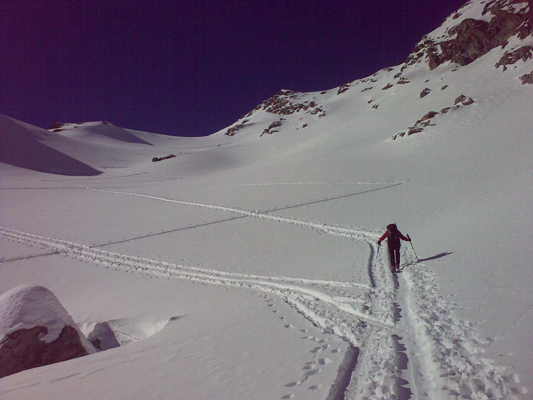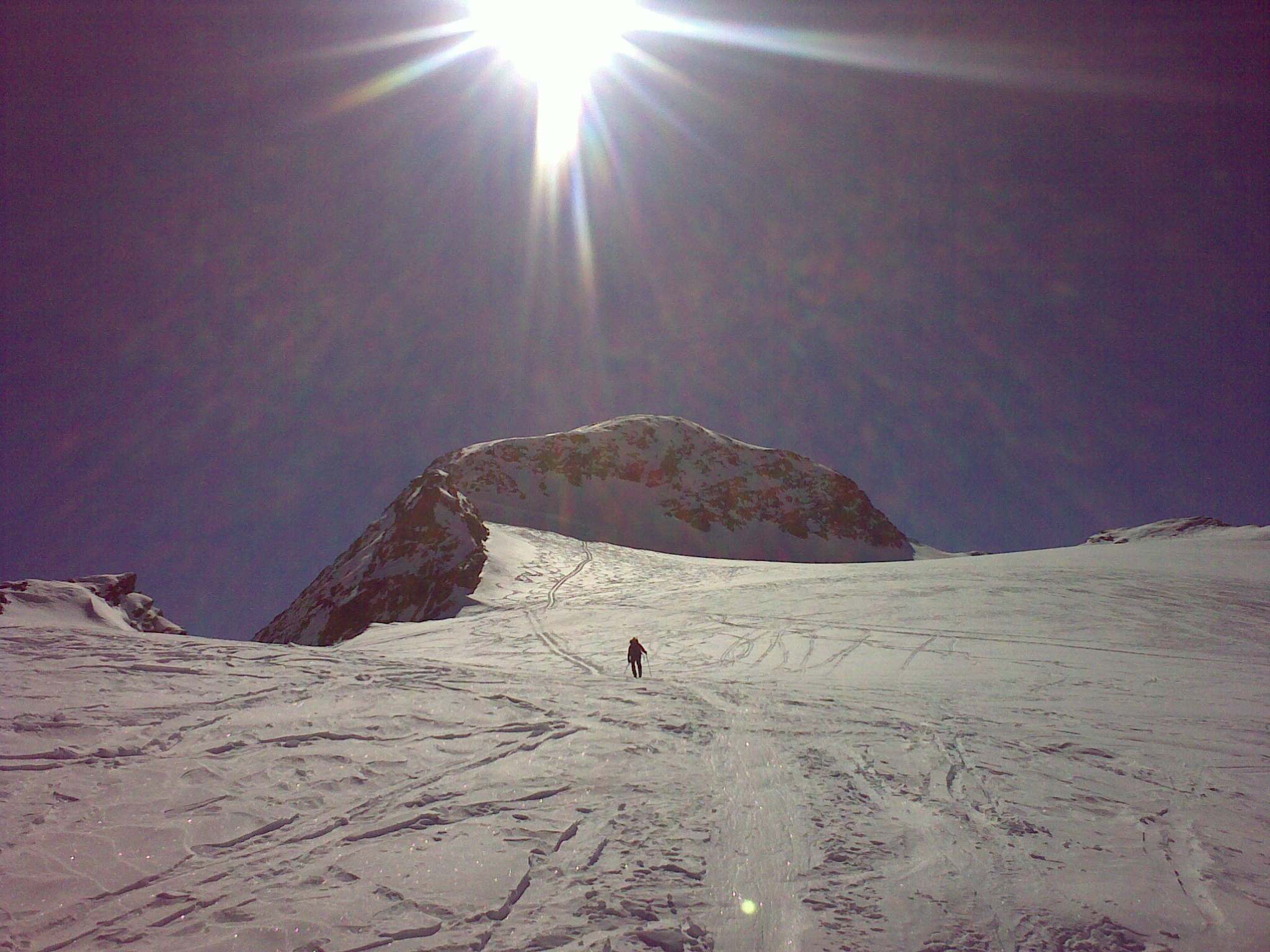 Záverečných, asi 100 výškových metrov, sa šľape už bez lyží. Podmienky boli dobré, takže bez mačiek. Celá túra je technicky nenáročná, kondične sa treba pripraviť na cca 1600 výškových metrov. Momentálne podmienky sú tu nasledovné: asi 40 cm nového snehu a v doline dosť teplo na túto ročnú dobu ale snehové podmienky hore ideálne, po 3 dňoch sneženia sa viditeľnosť zlepšuje a plánujeme ďalšie veci v okolí (je toho dosť viď. foto).