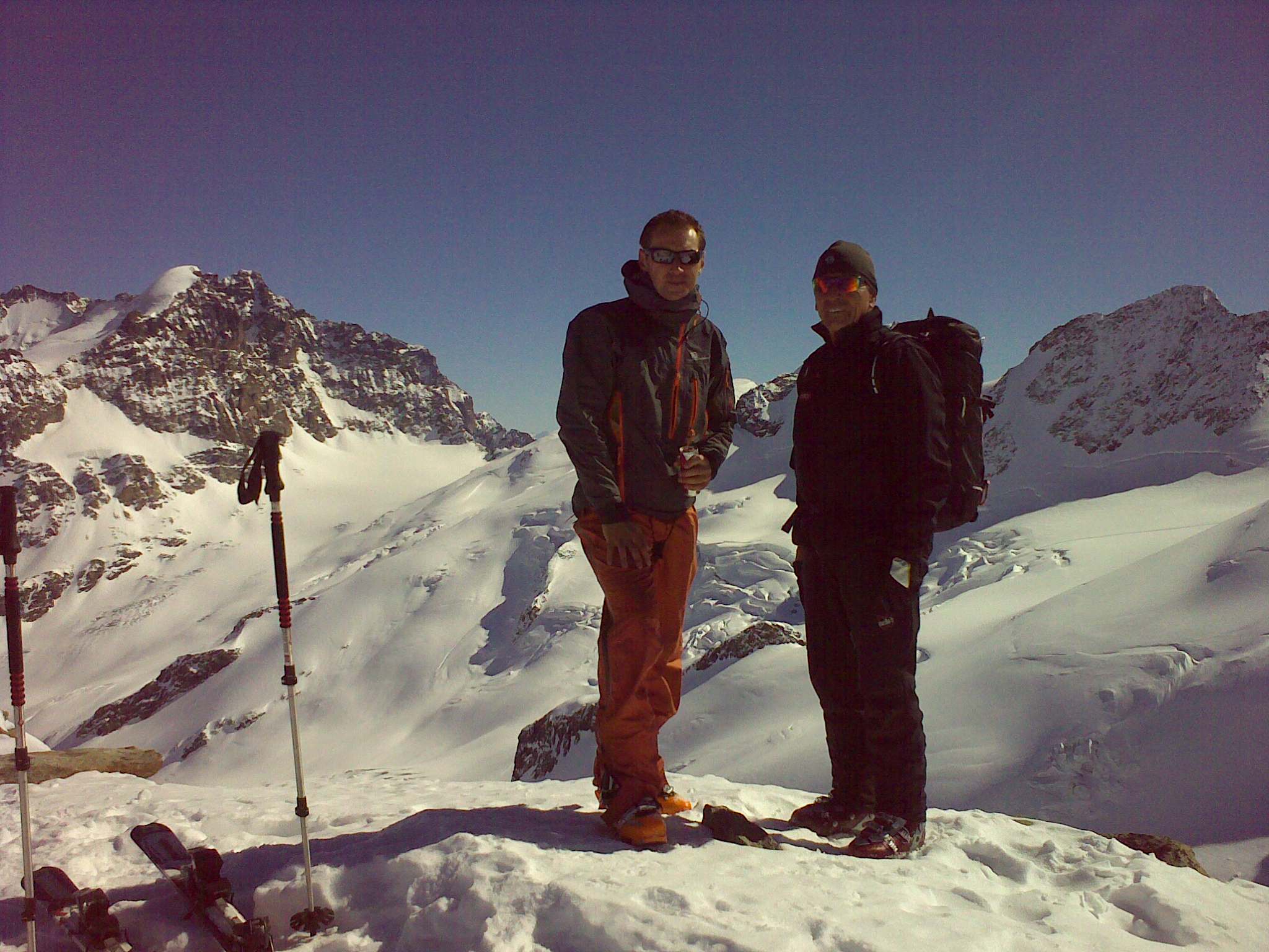 Štartoval som z doliny Vall Roseg smerom na Coaz Hütte, kúsok pred chatou som odbočil vpravo a pripojil na „výšľapovú diaľnicu", ktorá vedie od vrcholovej stanice Corvatch. Tam som sa stretol s kolegom, ktorý zlyžoval z Corvatchu cez ľadovec Georgeus. Výstup pripomína výstup na Cevedale cez Sulden Spitze. Po dosiahnutí prvého vrcholu treba odlepiť pásy a zlyžovať asi 200-250 výškových metrov a pokračovať z druhej strany už priamo na Chapütschin.
