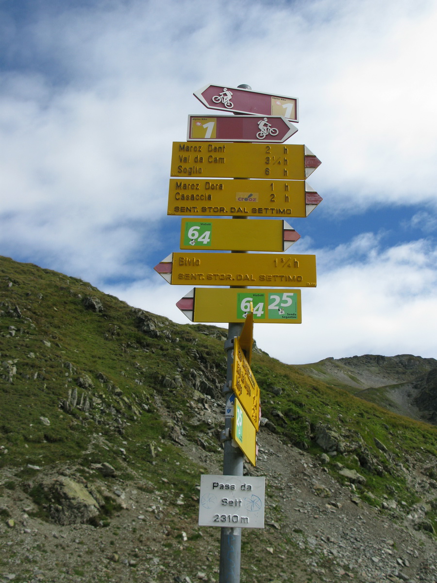 Septimerpass (2310m) je bajková klasika. Počul som o ňom už dávnejšie. Keď som ho chcel zokruhovať, tak sa mi logicky na mape ukázali dve asfaltové sedlá. Ako bajkerovi, ktorý si svoje užil aj na ceste, mi asfalt až tak nevadí, a tak cieľ bol jasný. Na začiatok ma čakal asfaltový Julierpass (2284m), známy už zo zimných skialpových túr.