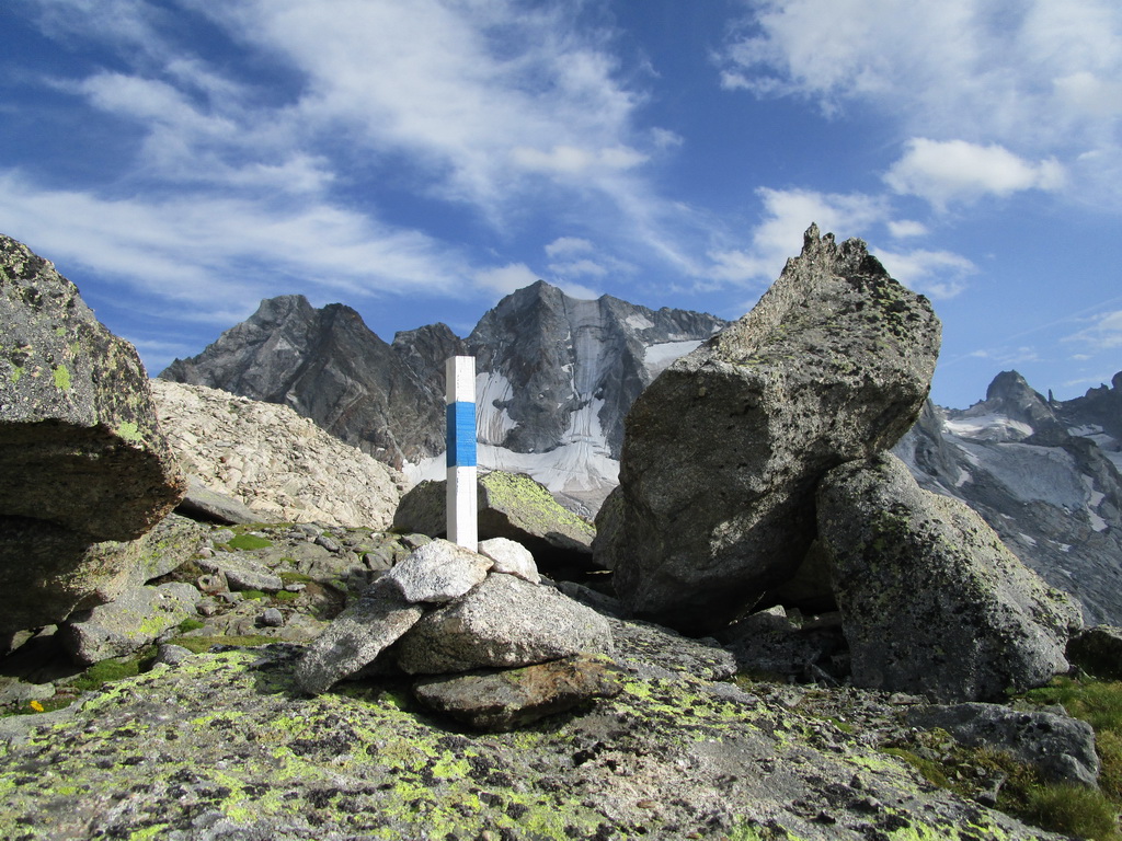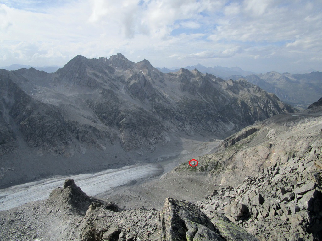 Už pri nedávnej návšteve na chate Forno som sa dozvedel že chatár Beat sa po preznačení modrej trasy na pass Casnil Sud pustil aj s priateľmi do budovania úplne novej modrej trasy na vrchol Monte Rosso. Modrá značka znamená v týchto končinách vysokohorskú trasu ktorá nie je špeciálne upravovaná a turisti sa na nej pohybujú na vlastné nebezpečenstvo. Pri ďalšej návšteve som prišiel na chatu až o tretej poobede ale to mi nevadilo aby som nevyskúšal len pred pár dňami dokončenú trasu.
